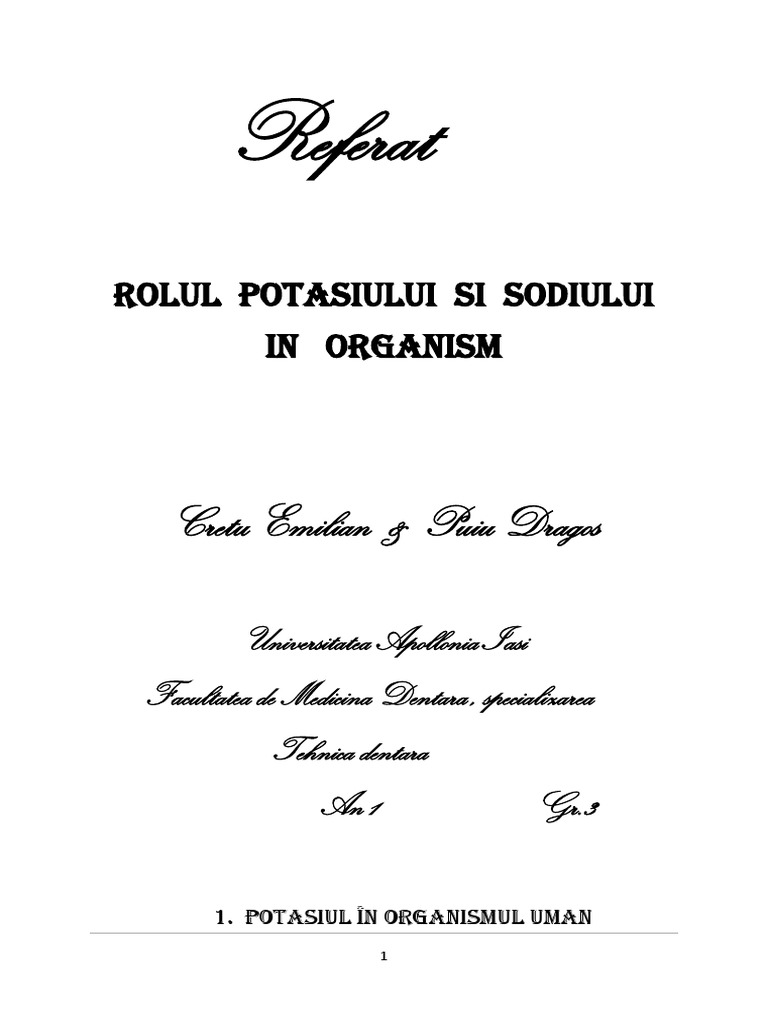 Http Atimures Ro Wp Content Uploads 2015 01 Simona Margarit Metabolismul Ionului De Potasiu Pdf Source from : 2 Este unul dintre mineralele extrem de importante pentru forta, functionarea sistemului nervos pentru organism este extrem de important sa fie mentinut raportul de 2/1 dintre potasiu si sare si asta nu numai pentru prevenirea hipertensiunii. Potasiul in organism are un rol fundamental, fiind unul dintre mineralele indispensabile. Pentru mentinerea unui nivel optim de potasiu magneziul are multiple roluri in organism: Potasiul se afla in principal in interiorul celulelor si doar mici cantitati la nivelul oaselor si in sange. Fara indoiala, potasiul este un mineral esential in pastrarea sanatatii organismului nostru.