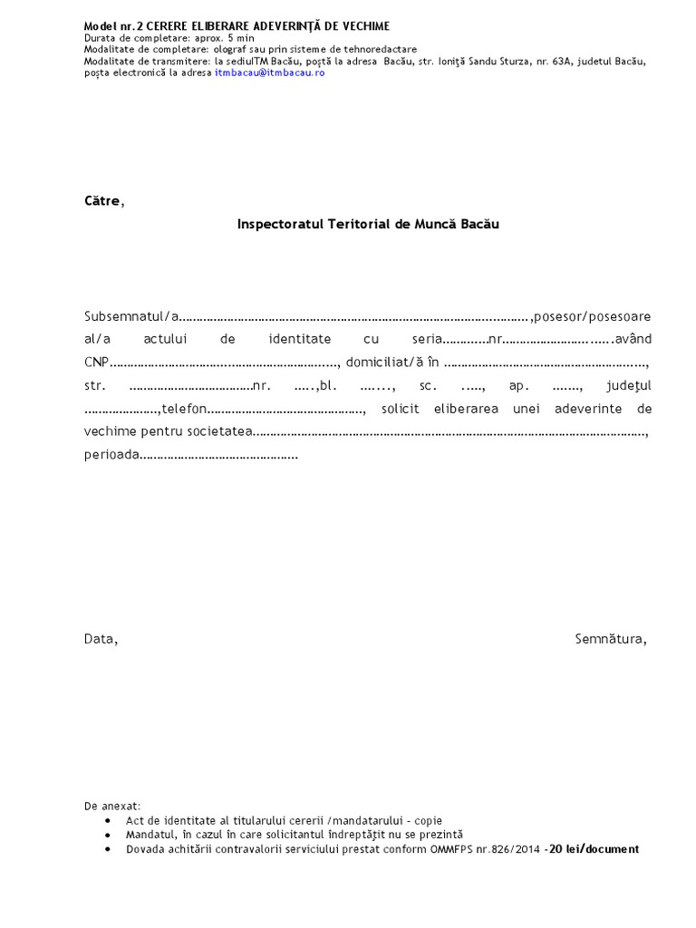 Adeverinta de vechime itm taxa eliberare adeverinta de vechime adeverinta in munca 2020 model adeverintamunca 2020.